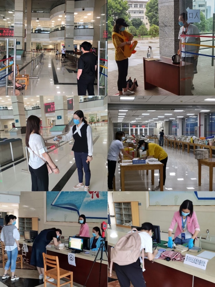 (通讯员 吴琼峰)根据学校2020届毕业生返校离校工作要求,图书馆(档案馆、校史馆)高度重视,统一部署,制定了本馆毕业生返校服务安排。图书馆二楼大厅采取“一站式”服务,设置专区为毕业生办理还书手续及凭证登记领取个人物品。安排了10个固定岗位,分为A、B两个班次,服务不间断。两个班次交接时间:A班,上午8点30——下午1点30;B班,下午1点——6点。6月19日图书馆(档案馆、校史馆)毕业生返校离校准备各项工作均已安排就绪。郑军校长、许邦官副书记等领导带队来馆检查时,对本馆的部署安排表示肯定。
