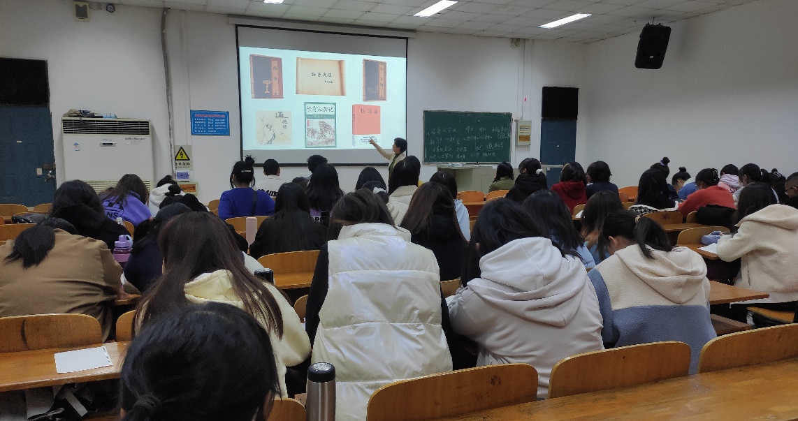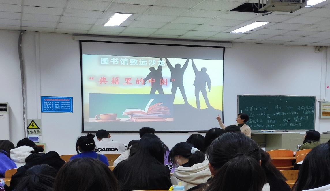 活动意在引领我校大学生对传统文化的关注,从优秀的中华文化典籍中汲取精神力量和激发大学生的读书热情,图书馆副研究馆员卢连梅老师与同学们交流互动,以文化影视栏目“典籍里的中国”作为向读者推荐书籍的渠道和媒介, 卢老师结合文化视频,现场为大家推送《论语》《史记》《诗经》《楚辞》等我校图书馆优秀馆藏书籍,讲述了优秀典籍在五千年历史长河中的源起、流转及书中的闪亮故事。