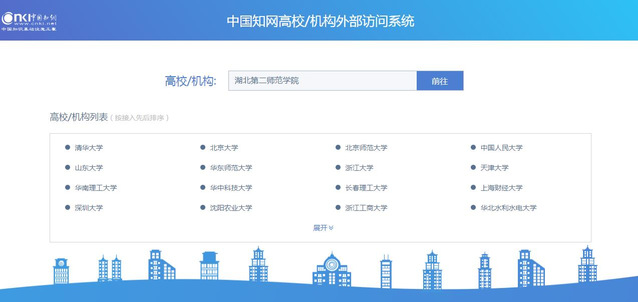 1.输入网址:fsso.cnki.net,进入中国知网高校/机构外部访问系统,在“高校/机构”栏,填写“湖北第二师范学院”,点击“前往”。