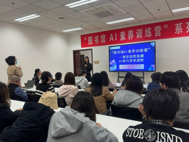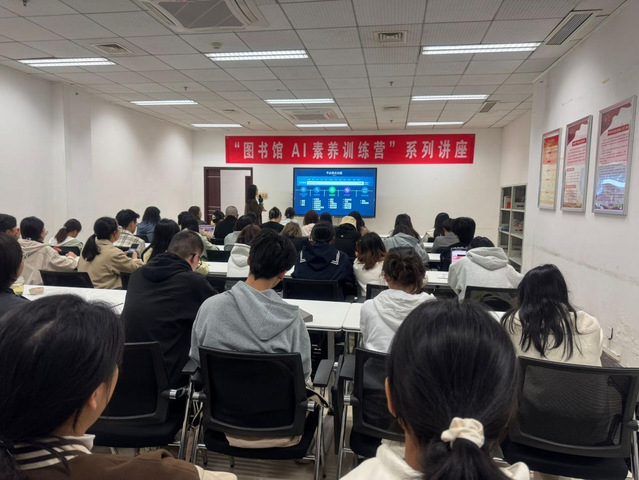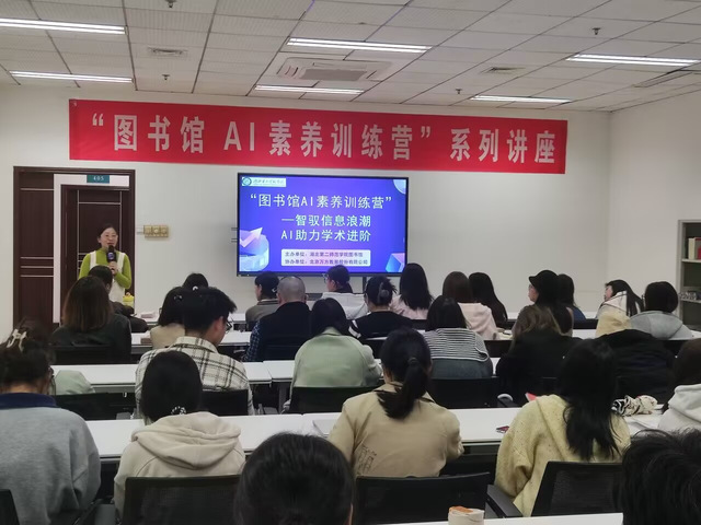 在AI技术迅猛发展并深刻影响学术研究模式的新时代背景下,图书馆积极探索创新服务模式,精心策划了“图书馆AI素养训练营”系列培训讲座,旨在通过系统培训,帮助我校师生熟练应用AI工具,提升学习科研效率,开拓创新思维。3月27日,“图书馆AI素养训练营”首场培训讲座——“智驭信息浪潮,AI 助力学术进阶”正式拉开帷幕,吸引了众多师生热情参与。