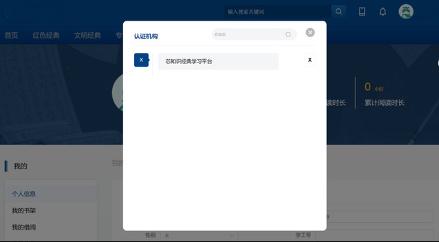 第三步:请先连接校园网,点击页面右上角头像-点击【认证机构】-选择【湖北第二师范学院】进行认证即可。