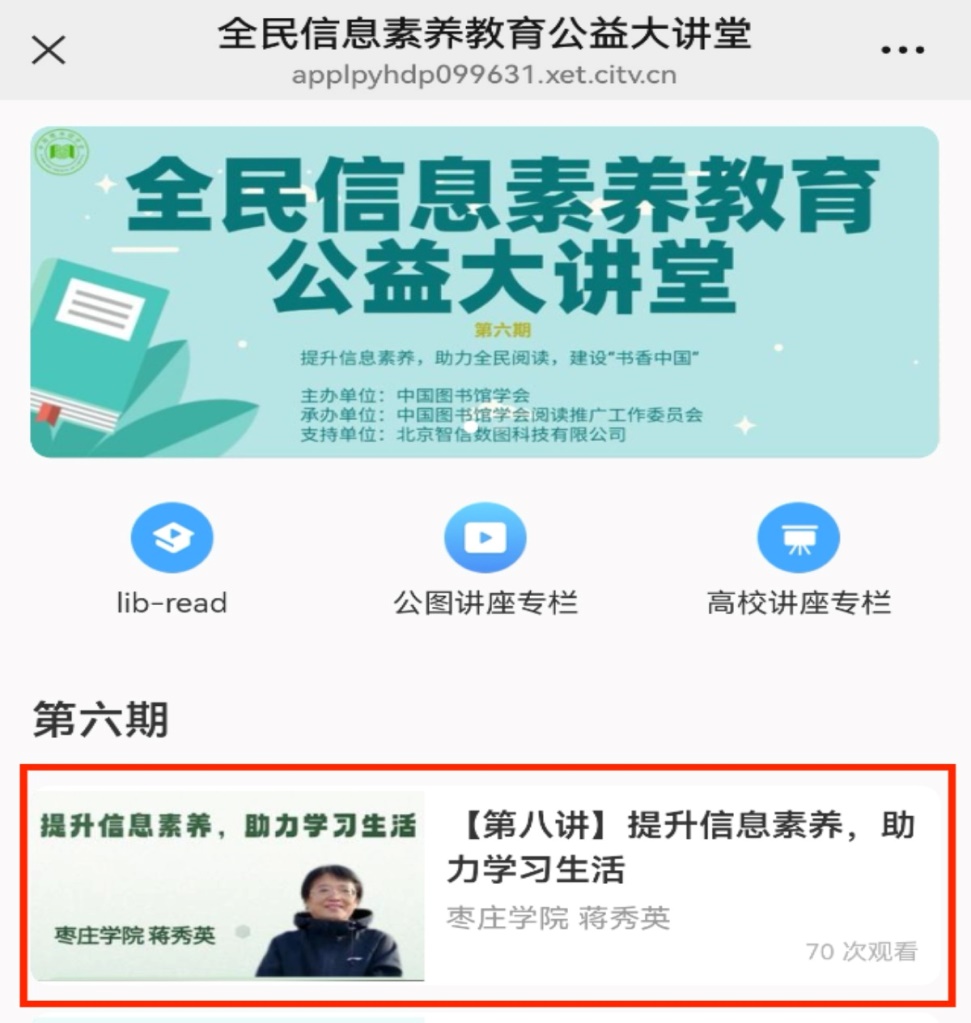 为帮助我校师生们解决学习和工作中的痛点,提升大家的“信息超能力”让学习工作事半功倍!图书馆依托高校信息素养教育数据库为大家推出“提升信息素养,助力学习生活”主题讲座。欢迎大家准时观看!