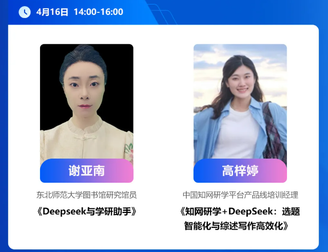 为帮助我校广大师生熟练掌握AI工具,智慧化获取贯通和应用知识资源,培养深度阅读习惯和批判性思维,为全民阅读和学术创新注入新动力!图书馆现依托中国知网学术大讲堂举办“品质悦读 智慧研学”系列公益讲座。欢迎大家准时收看!