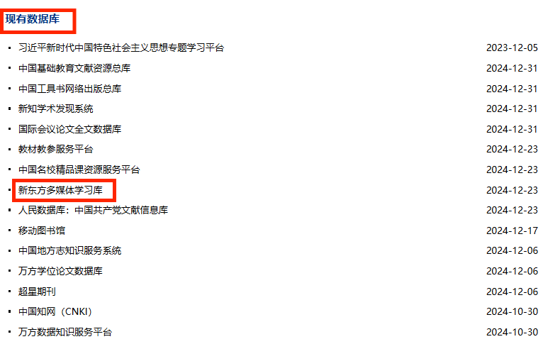 2.①点击底部的“资源”→②“校外远程访问”→③“常用数据库”→④“中文库”→⑤选择“新东方多媒体学习库”进入主页面→⑥点击“直播”进入新页面→⑦选择6月找到“教师资格证笔试全学段备考攻略”直播课即可收看。(首次访问请先在校园网内完成“注册”,谢谢配合!)。