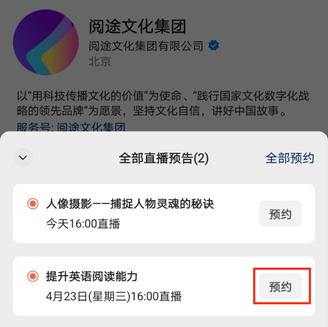 使用微信扫描下方二维码进入主页面点击预约即可观看。