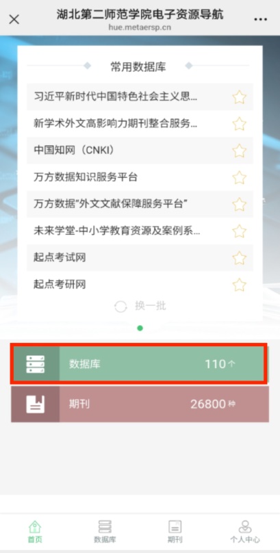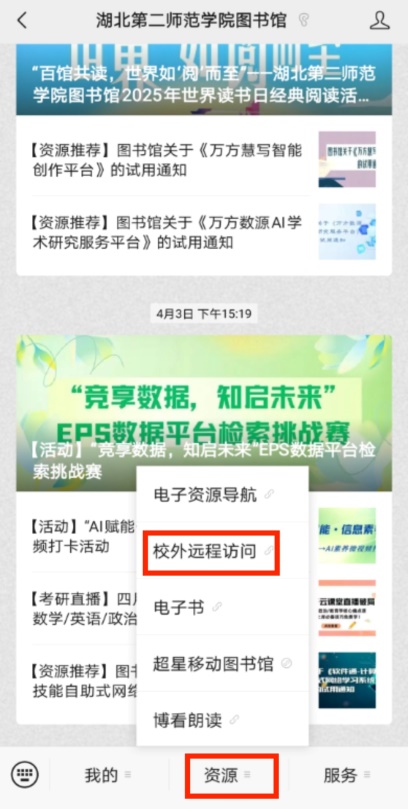 1.关注“湖北第二师范学院图书馆”微信公众号,进入首页。