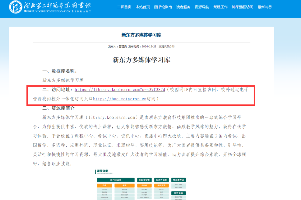 登录学校图书馆网站主页,在图书馆“资源导航”中“现有数据库”电子资源中找到“新东方多媒体学习库”,打开链接,点击轮播图“新东方智慧教育全国读书月活动(第六届)”活动,登录个人信息,参加诵读活动。