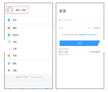 (二)点击右下角“我”-“登录注册”-“新用户注册”注册并登录学习通(老用户忽略此步骤)。