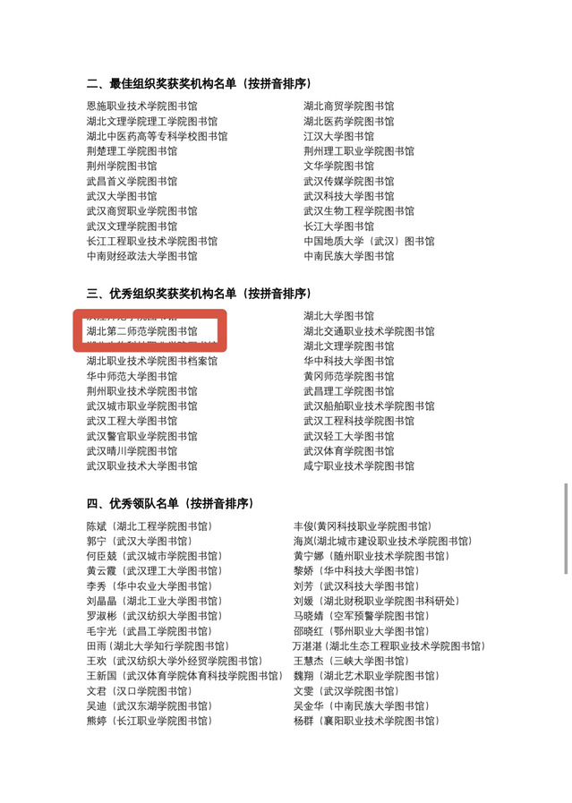 近日,由湖北省高等学校图书情报工作委员会阅读推广专业委员会主办、武汉大学图书馆承办的“第六届湖北省高校书评影评大赛”评选结果出炉,我校获一等奖1项、优秀奖1项,图书馆获优秀组织奖。这是我校连续第四年获此赛事一等奖。