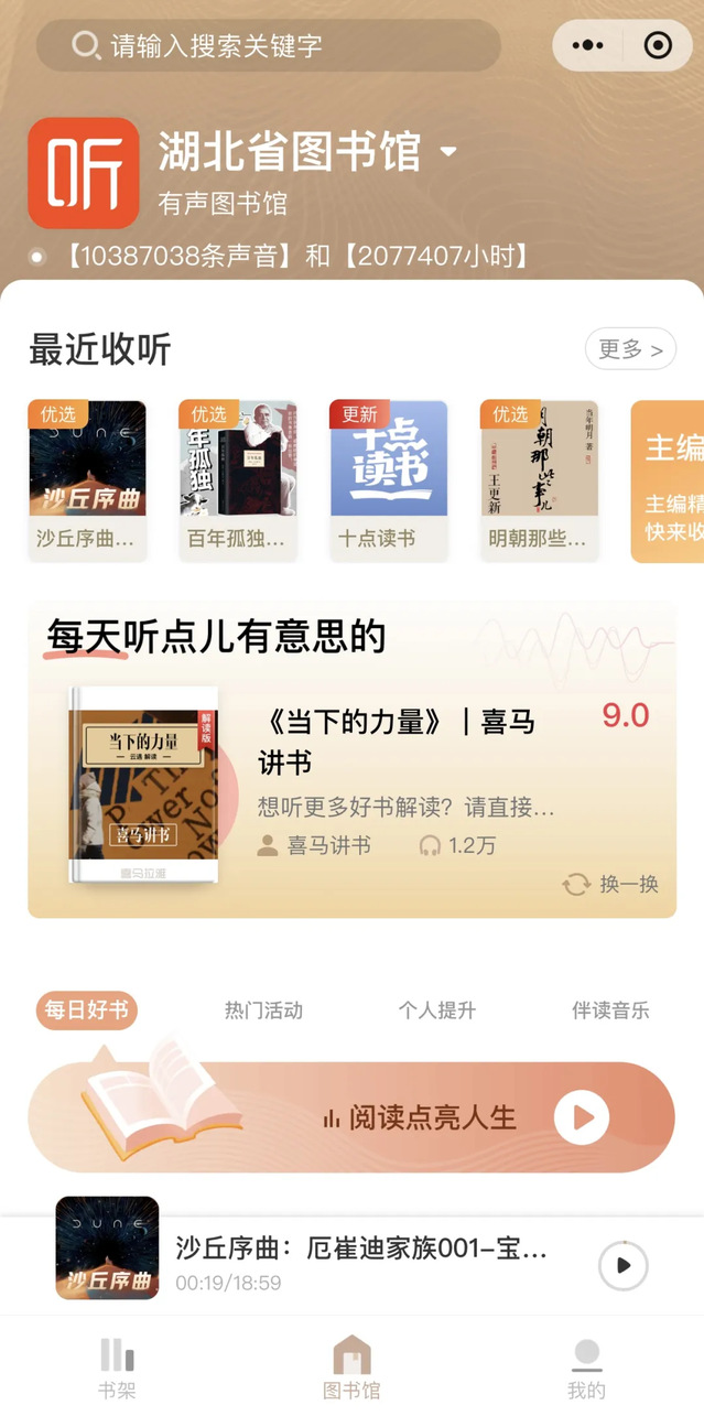 领先的音频分享平台机构版,含大数据筛选出的收听量高的有声书、播客、知识课程等,包括有声图书馆综合内容和vip畅听内容,共计28000多个专辑,每周持续更新。