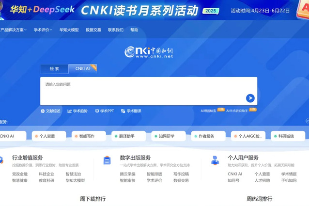 基于《中国知识资源总库》的全球最大的中文知识门户网站,囊括国际国内学术期刊、会议论文、硕博学位论文、学术专著、经济与社会统计数据、专利、标准、科技成果、法律法规与党政文件,以及20多类知识资源的巨型数字出版与传播平台。