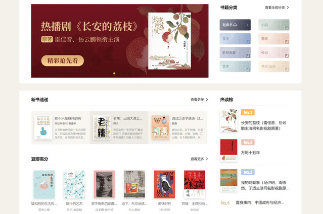 坚持精品化路线的优质阅读平台,提供由资深编辑基于豆瓣高分、当当/亚马逊畅销榜、大奖书系等筛选出的10万余册重磅好书和50000集听书。
