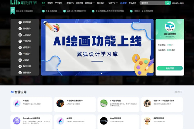 兼具AI绘画、Deepseek等智能功能,涵盖PS、PR、CAD、Maya、3dsMax、CorelDRAW等55+设计软件的案例教学课程及30多个职业的学习路径。
