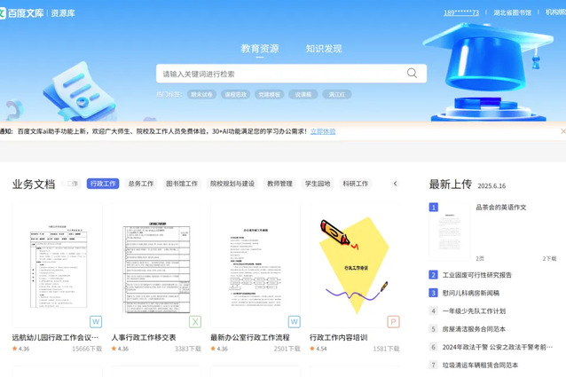 依托百度文库大数据整理的实用性文档平台,涉及教育、专业资料、实用文档、资格考试等领域,覆盖31个主流行业,共235个细分资料库以及15个具有文库特色的在线专题库,共计包含各类文档资源逾9亿份。