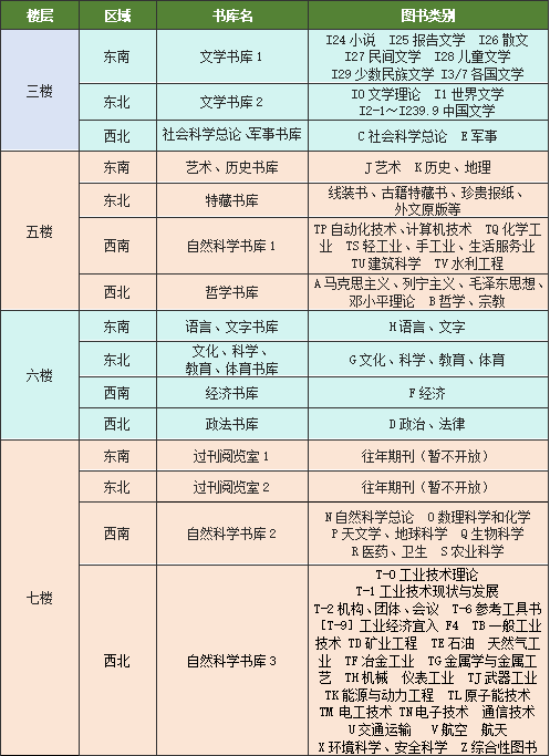 图书馆借阅服务位于2层大厅的“自助借还书机”和“总服务台”,馆藏借阅图书分布于3、5、6、7层的书库内。