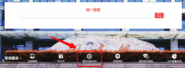 3.校外访问登录图书馆主页(网址:http://tsg.hue.edu.cn)——点击“博采远程访问”——点击“登录”根据提示完成本校“统一身份认证”——进入使用网站资源。