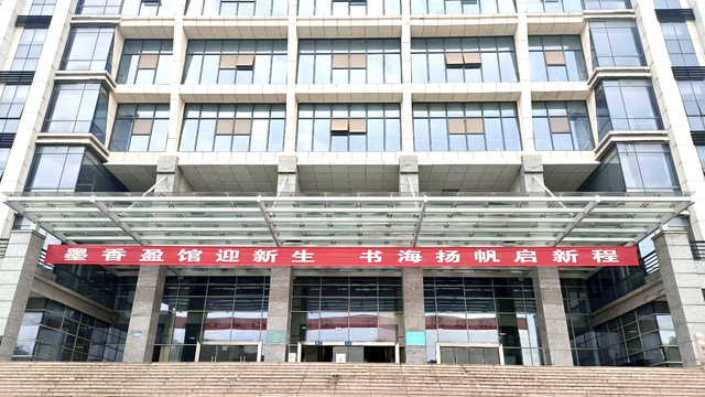 学校图书馆馆舍总面积4.98万余平方米,楼高8层,配置中央空调、电梯以及智能化的消防、监控系统,实现WIFI网络全覆盖,全馆实行借、阅、学、参、藏一体化的“一卡通”开放式服务。