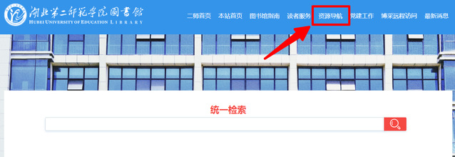 1.登录图书馆主页(网址:http://tsg.hue.edu.cn)——顶部选择“资源导航”——浏览本馆订购的数字资源“现有数据库”。