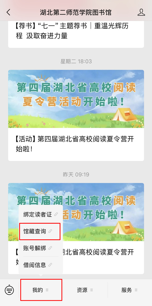 【微信端】关注“湖北第二师范学院图书馆”微信公众号——点击“我的”——馆藏查询。