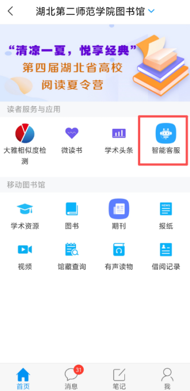 2.下载“学习通”APP,在“首页”右上角输入“邀请码hbdesfxy”进入“湖北第二师范学院图书馆”,在服务栏中就可以找到我啦!