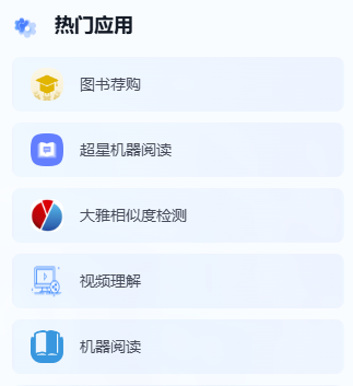 AI馆员可是个“全能小帮手”哦!它能直接调用机器阅读、AI荐书、大雅相似度检测、视频理解等多种AI工具,让服务变得更智能、更多元、更便捷!